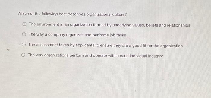 Solved Which Of The Following Best Describes Organizational Chegg Com